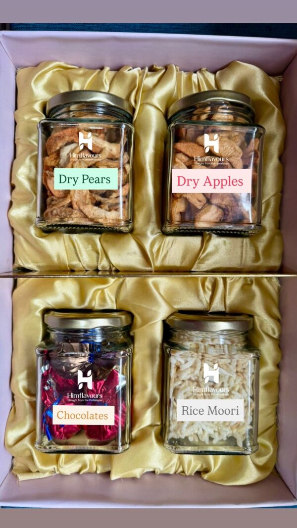 Experience the authentic taste of the Himalayas with our Himachali Healthy Snack Gift Box, a thoughtfully curated pack combining traditional flavors and healthy treats. This wholesome snack box includes crispy Rice Moori, handcrafted chocolates, and naturally sun-dried apples and pears — all sourced from the pristine valleys of Himachal Pradesh.