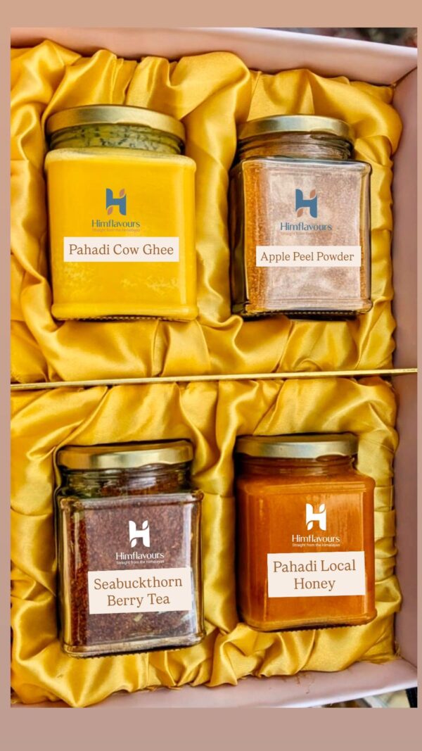 Every product in this box is made using traditional, chemical-free methods, ensuring maximum purity and nutrition. From the antioxidant-rich Seabuckthorn Tea to the immunity-boosting Apple Peel Powder and nutrient-dense Honey and Ghee, this pack is designed to promote holistic health and vitality.