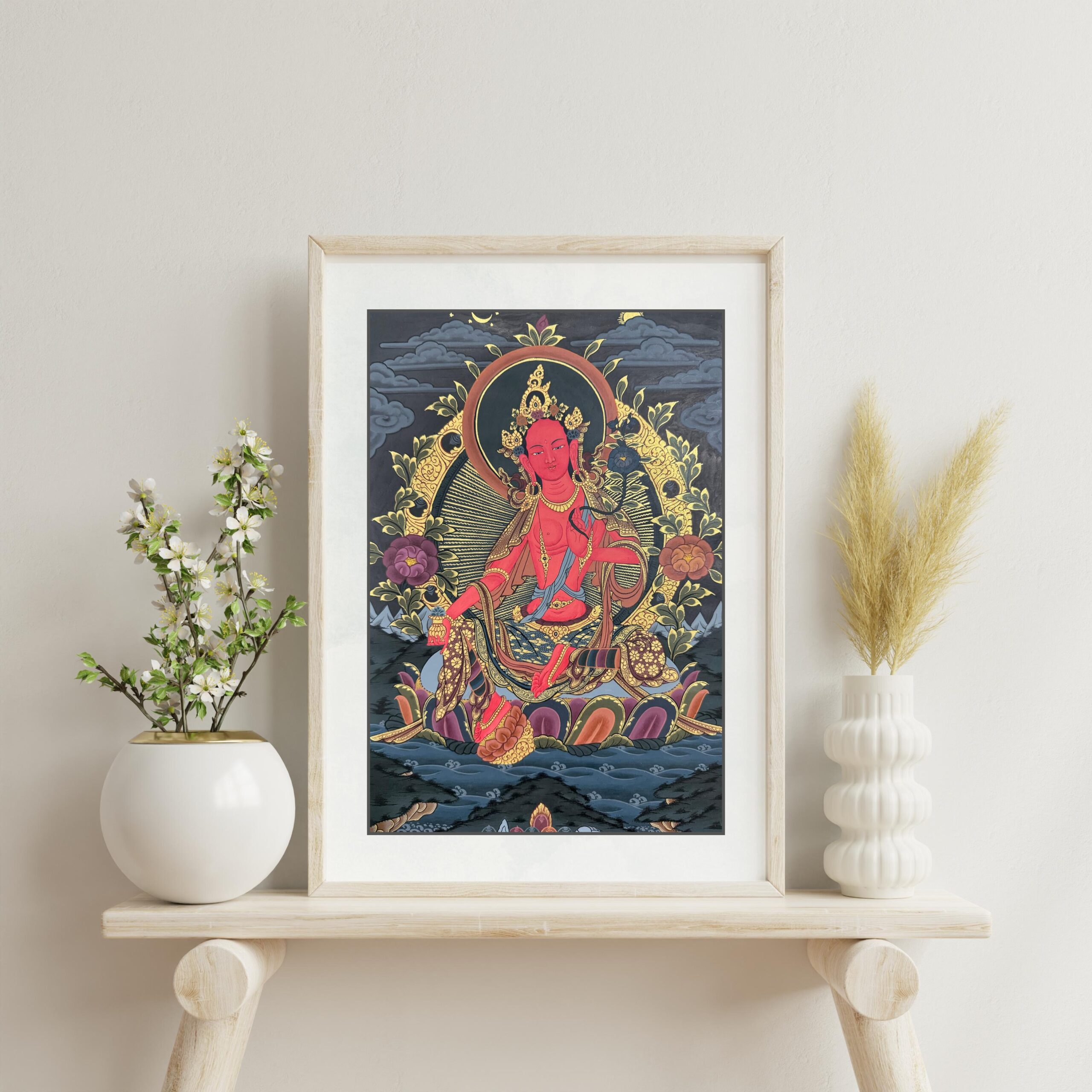 Red Tara, a powerful manifestation of the goddess Tara in Tibetan Buddhism, symbolizes magnetization, subjugation, and the transformation of desire into enlightened activity. She is revered for her ability to attract positive energy, subdue negativity, and guide practitioners toward spiritual awakening.